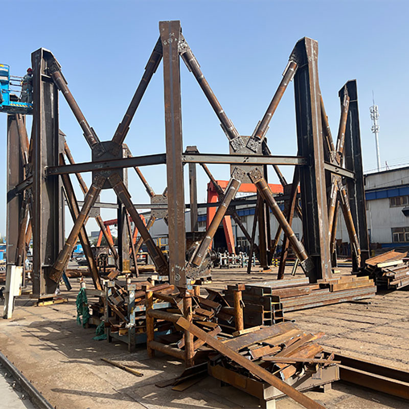 Die Hauptkomponenten der drucktragenden Konstruktion eines Gebäudes sind in horizontale und vertikale Wände unterteilt, die hauptsächlich horizontale und vertikale Lasten aufnehmen. Säule – eine Komponente, die hauptsächlich vertikale Lasten trägt und zur Aufnahme von Boden- oder Dachlasten verwendet wird, hauptsächlich unterteilt in Rahmensäulen, Komponentensäulen usw. Balken – eine horizontale tragende Komponente, die zur Aufnahme der Last auf Boden- oder Dachplatten verwendet wird und hauptsächlich unterteilt ist in quadratische oder kreuzförmige Stahlkonstruktionen. Die tragende Struktur legt großen Wert auf die Schweißqualität in der Produktion und erfordert im Allgemeinen ein Vollschmelzschweißen mit sehr genauen Anforderungen an Geradheit und Torsion. Wenn es um die Prüfung komplexer Schweißkomponenten geht, müssen zusätzlich zur herkömmlichen MT- und UT-Prüfung spezielle Prüfformen hergestellt werden, um sicherzustellen, dass die Abmessungen jeder kleinen Komponente mit den Zeichnungsanforderungen übereinstimmen.